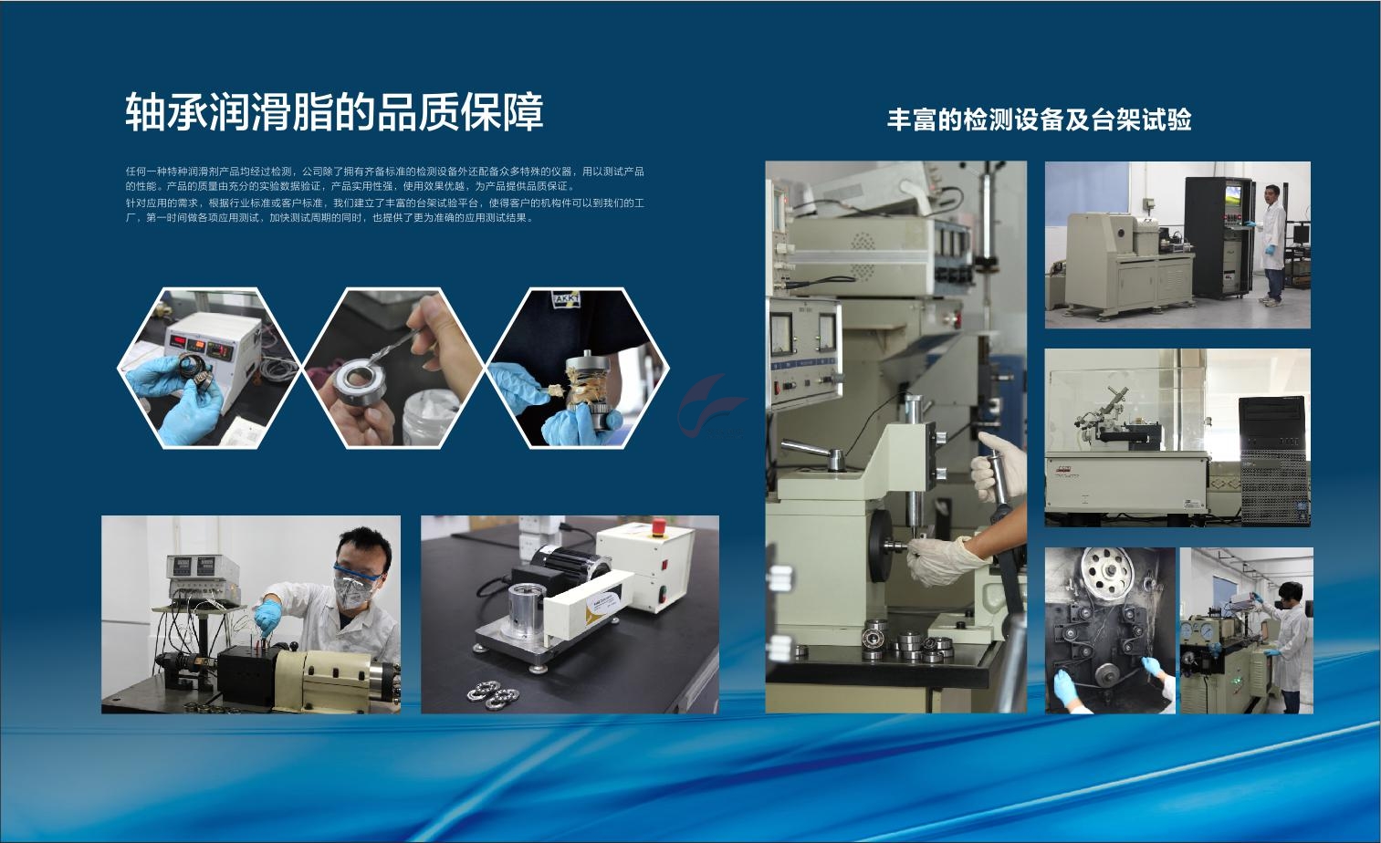 合誠潤滑(FAKKT弗克)旗下的任何一種特種油脂,均經(jīng)過嚴苛的檢測流程,公司除了擁有齊備標(biāo)準的檢測設(shè)備之外,還配備諸多特殊檢測儀器,用以測試產(chǎn)品的性能,以保證輸出的產(chǎn)品優(yōu)質(zhì)無瑕。質(zhì)量保障是合誠潤滑(FAKKT弗克)給予客戶最基本的承諾,通過充分的數(shù)據(jù)驗證,合誠潤滑(FAKKT弗克)的特種油脂產(chǎn)品具備超高實用性能,使用效果優(yōu)越。而為了針對不同客戶的應(yīng)用需求,合誠潤滑(FAKKT弗克)根據(jù)行業(yè)標(biāo)準或客戶標(biāo)準,建立了豐富的臺架試驗平臺,使得客戶的機構(gòu)件到達工廠時可以第一時間做各項應(yīng)用測試,這在加快測試周期的同時也為客戶提供了更為準確的應(yīng)用測試結(jié)果。