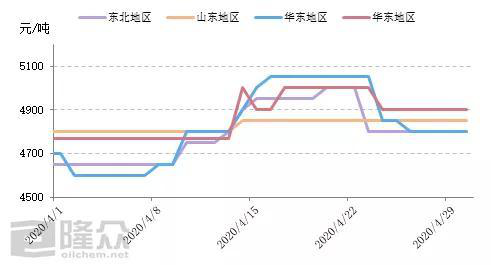 下游潤滑油工廠在4月份對高粘度基礎油的使用量偏多,所以高粘度的采購需求增速明顯快于低粘度基礎油,以350N、500N為主的高粘度基礎油應季需求上漲。